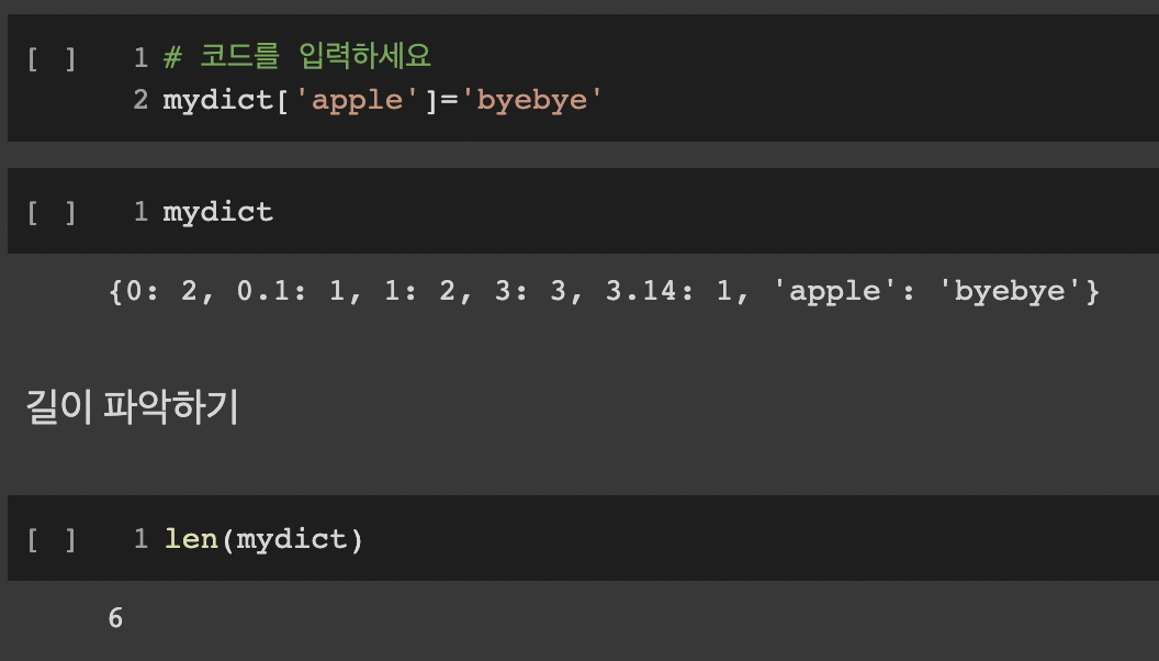 (4) dict : dict()로 선언. 이 배열에 값이 들어갈때는 FIFO가 아닌 숫자열, 문자열 오름차순 순으로 값이 들어간다.