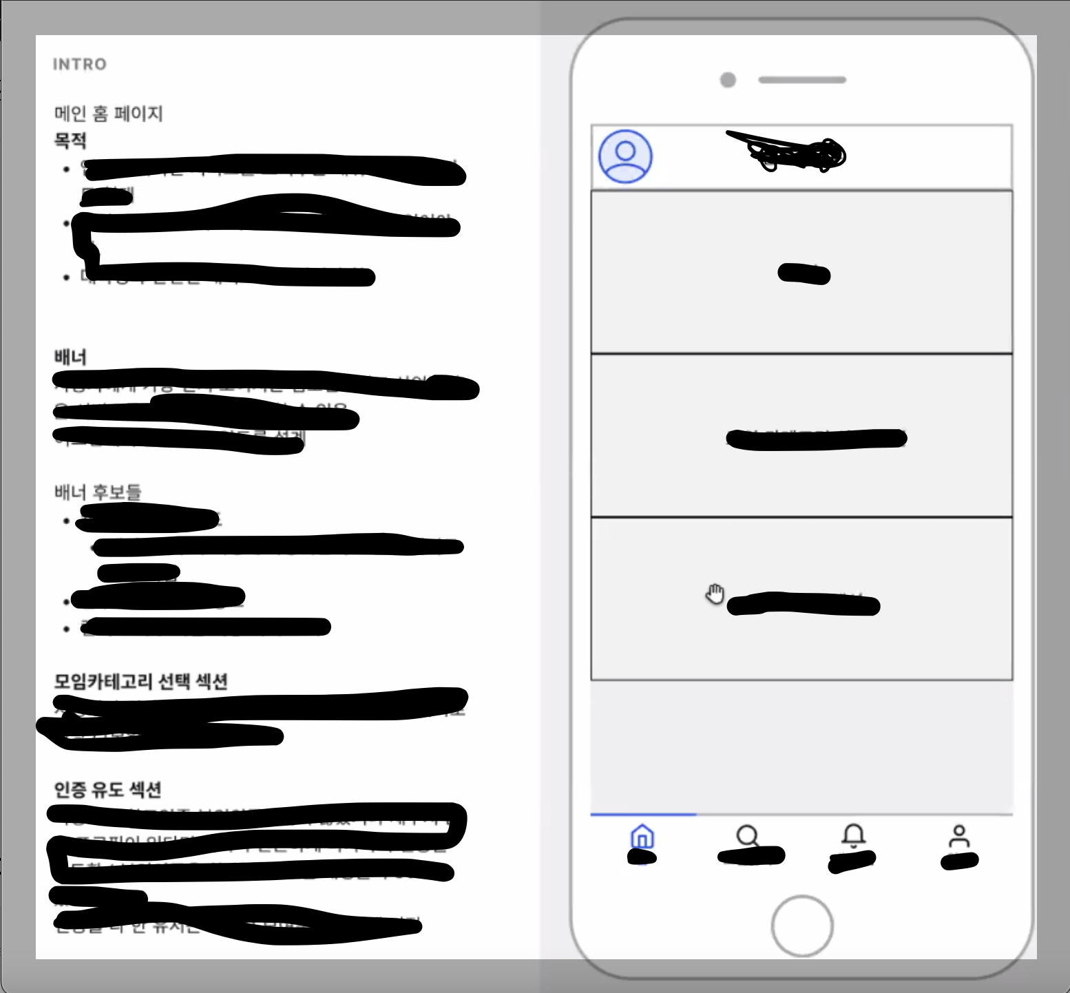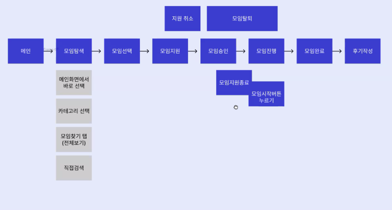 그래서 홈 화면을 가장 먼저 그리고, 거기서 가지를 뻗어나가면 된다. (메인기능 → 그 다음단계 이런식으로)